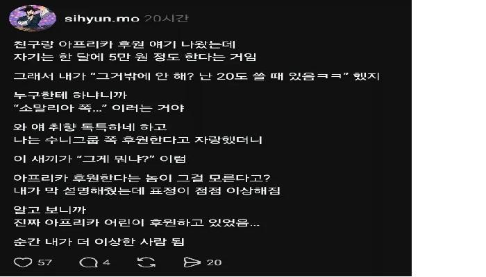 아프리카 후원에 월 5만원 쓰는 친구