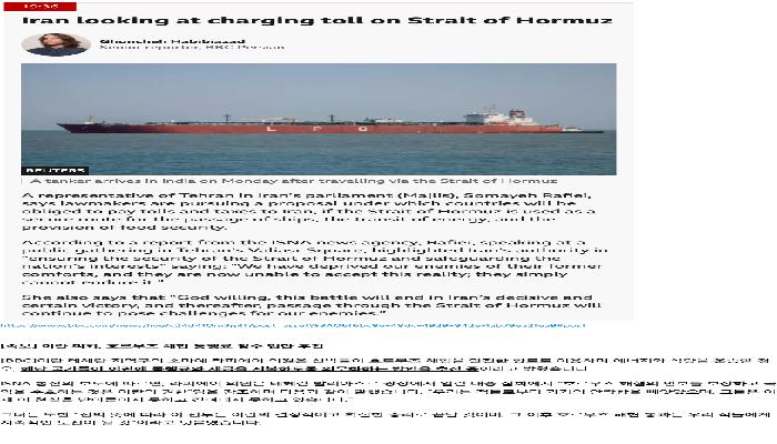 [속보]이란, 호르무즈 통행료 징수 법안 추진