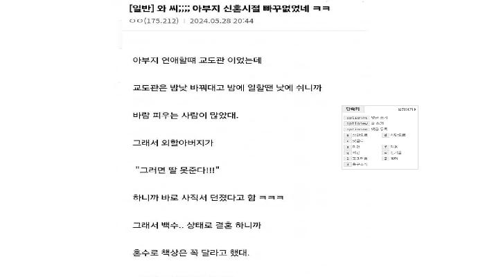 울 아버지 신혼 때 진짜 노빠꾸 상남자였던 것 같...