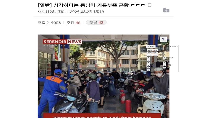 요즘 동남아 기름 부족 수준... 진짜 심각한 듯...