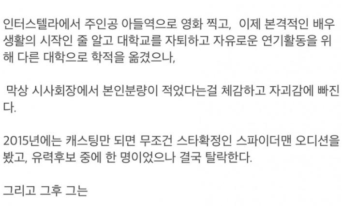 꿈을 위해 대학 자퇴했던 배우.