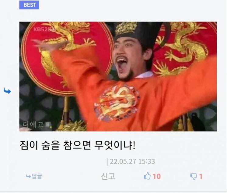 짐이 숨을 참으면 무엇이냐..
