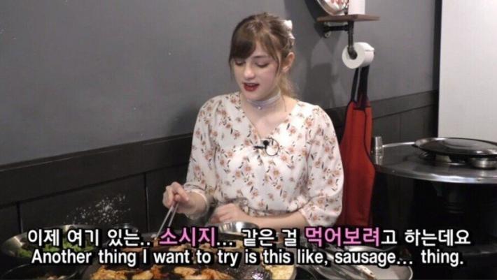 핑크 소시지에 놀란 독일 누나.