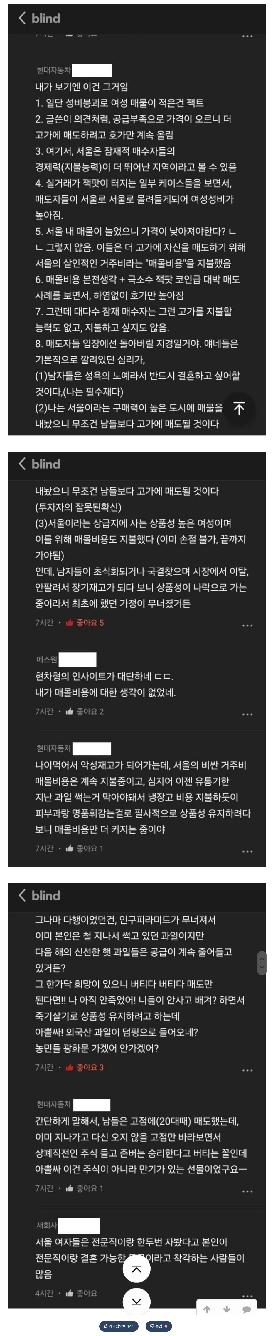 블라인드에 올라온 글인데 비유가 진짜 찰떡이네. 현대차 직원이 쓴 요즘 결혼시장 비유라는데