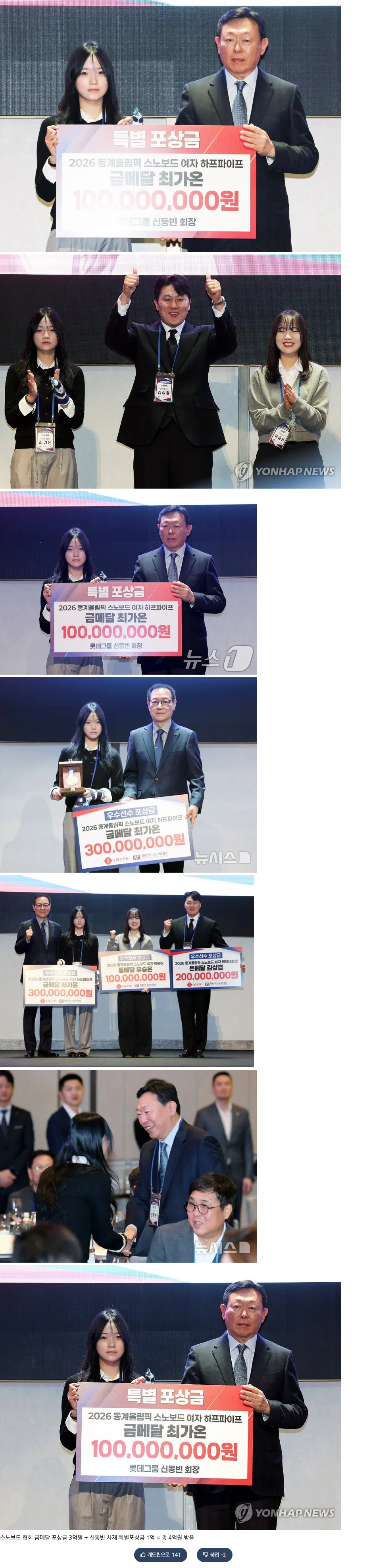 오늘자 롯데 신동빈 회장이랑 최가온 선수 투샷
