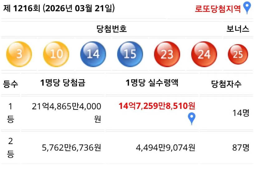 이번 주 로또 1등, 2등 실수령액 떴음