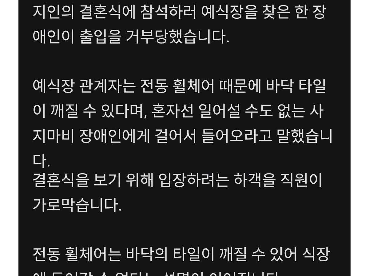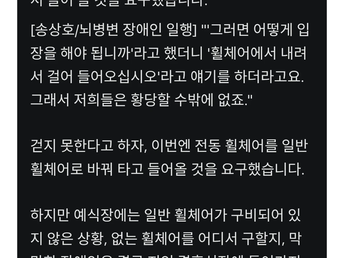 전신마비 장애인한테 걸어서 들어오라고 한 예식장 수준 ㄷㄷ