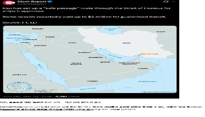 이란 이 새끼들 해협 통행료로 27억씩 내놓으라 함ㅋㅋ