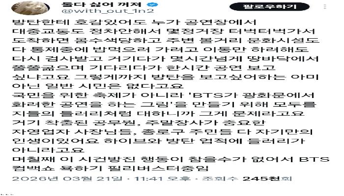 BTS 광화문 그림 하나 만들려고 남들 들러리 세우는 ...