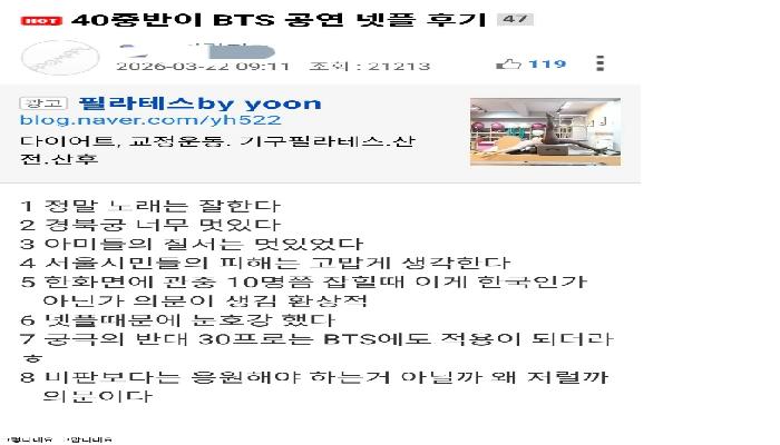펨코에서 추천 900개 박힌 BTS 콘서트 팩폭 근황