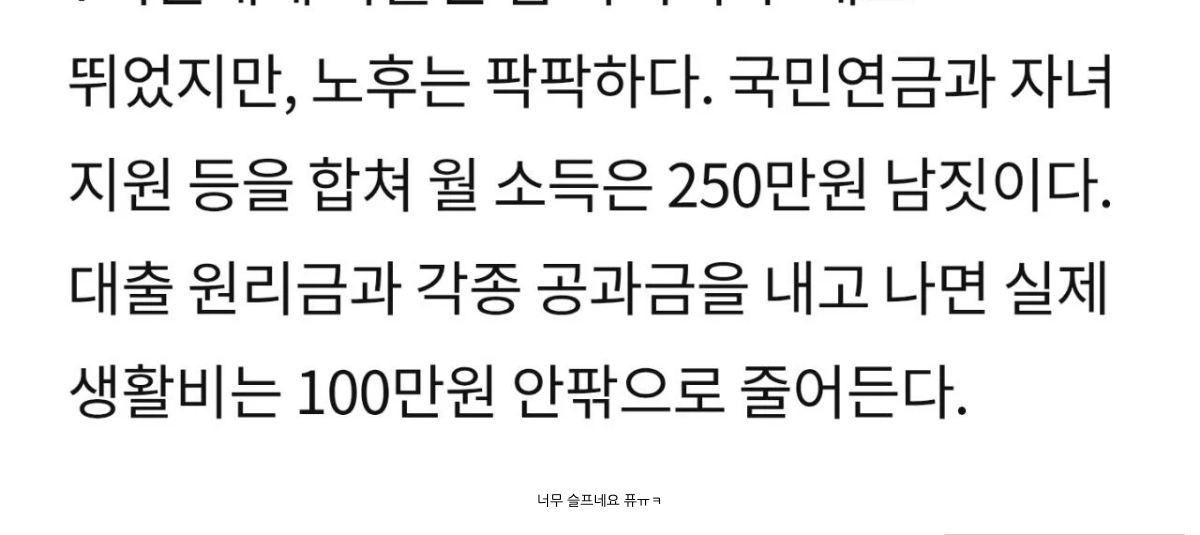같아도 실제 생활은 팍팍한 경우가 꽤 있는 듯. 이게 요즘 고령층 1주택자들의 현실을