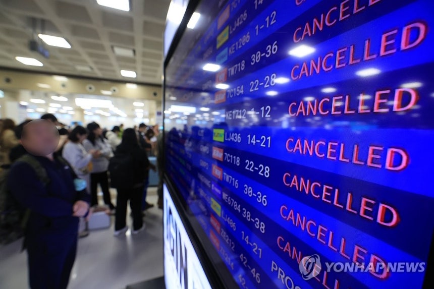 모양임. 안내 전광판 사진 보니까 온통 결항이랑 지연 표시로 도배되어 있던데 현장에서